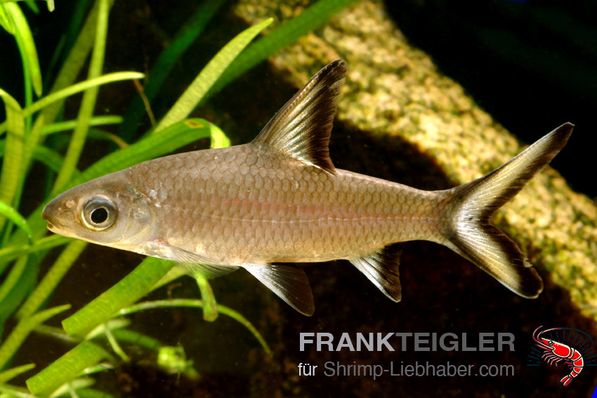 Die Haibarbe (Balantiocheilus melanopterus) ist ein eindrucksvoller, aktiver und friedlicher Schwarmfisch aus Südostasien. Mit ihrer eleganten, silbrig glänzenden Körperform und den kontrastreichen schwarzen Flossensäumen erinnert sie optisch an kleine Haie – daher ihr bekannter Trivialname. Sie ist ein wunderbarer Blickfang für große Aquarien und zeigt dort ein dynamisches Schwarmverhalten.