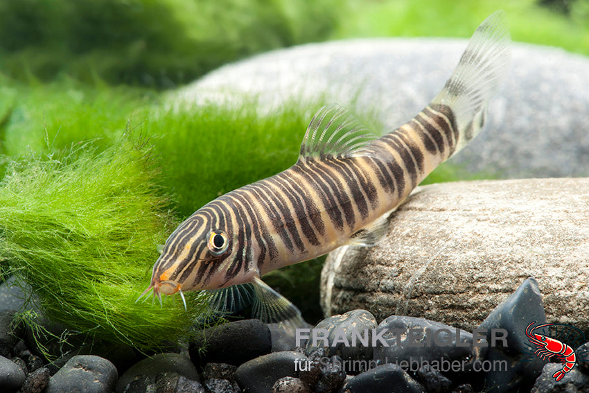 Die Streifenschmerle (Botia striata) ist eine der schönsten und friedlichsten Schmerlenarten. Mit ihren feinen, parallel verlaufenden gelblichen bis weißen Streifen auf dunkelbraunem Körper wirkt sie äußerst elegant. Sie bleibt deutlich kleiner als viele andere Schmerlenarten und eignet sich daher auch für mittelgroße Aquarien. In der Gruppe zeigt sie ein aktives, verspieltes und sozial gefestigtes Verhalten.