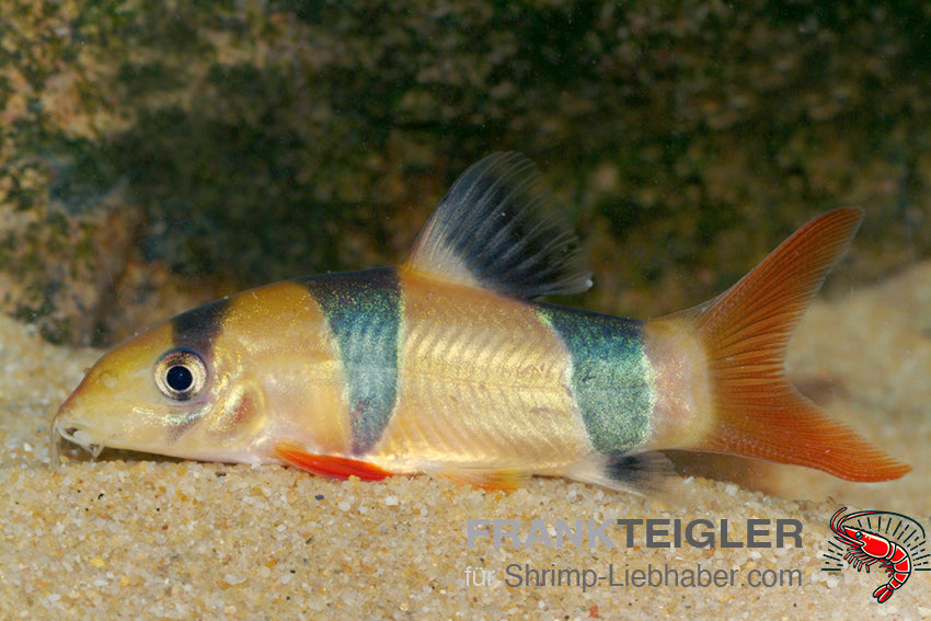 Die Prachtschmerle (Chromobotia macracanthus) zählt zu den bekanntesten und beliebtesten Schmerlenarten im Aquarium. Mit ihrer leuchtend orangefarbenen Grundfärbung, den drei markanten schwarzen Querbändern und dem lebhaften, intelligenten Verhalten ist sie ein absoluter Blickfang. Prachtschmerlen sind sehr soziale, langlebige Fische, die in Gruppen ein ausgeprägtes Sozialverhalten zeigen und eine enge Bindung untereinander entwickeln.