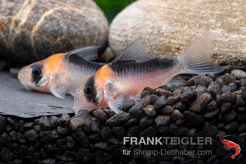Der Kupferfleck-Panzerwels (Corydoras duplicareus) zählt zu den besonders attraktiven Corydoras-Arten und ist eng mit Corydoras adolfi verwandt. Auffällig sind der leuchtend orange-kupferfarbene Fleck hinter dem Kopf, das kräftige dunkle Rückenband sowie der silbrig schimmernde Körper. Durch sein ruhiges, friedliches Wesen und sein ausgeprägtes Sozialverhalten ist er ein idealer Bodenfisch für hochwertige Gesellschaftsaquarien.