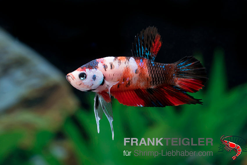 Shrimp Liebhaber empfiehlt: Der Marble Red zeigt kontrastreiche Rot-, Weiß- und Schwarztöne wie gemalt. Als Kurzflossen-Form ist er wendig, vital... Lesen Sie mehr