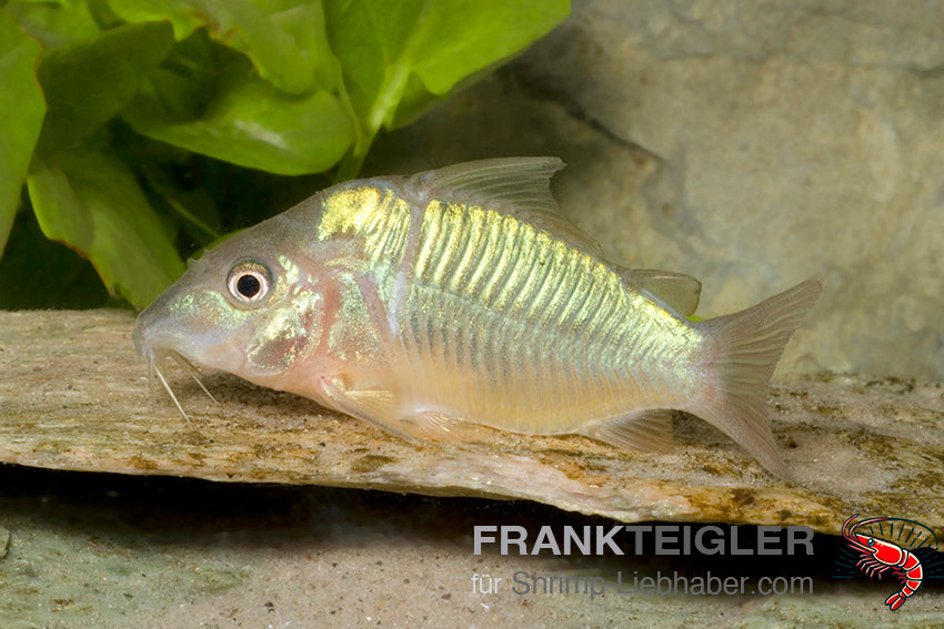 Der Smaragdpanzerwels ist ein beeindruckender Bodenbewohner mit schimmernd grünlich-blauer Färbung, die je nach Lichteinfall smaragdartig glänzt. Mit seiner ruhigen und friedlichen Art ist er ein beliebter Aquarienfisch, der sich hervorragend in Gesellschaftsbecken integrieren lässt. Als geselliger Schwarmfisch zeigt er sein natürliches Verhalten am besten in Gruppenhaltung.