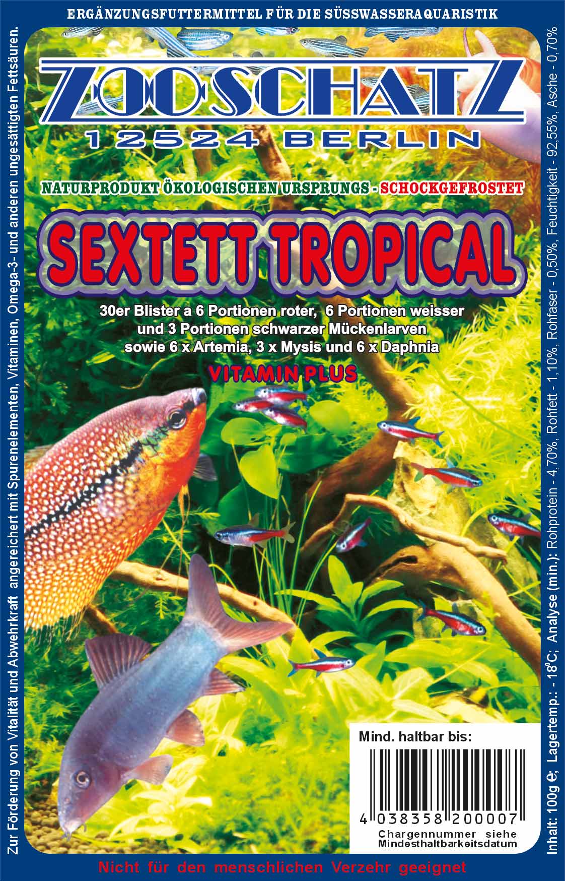 Tropical Sextett 100g Frostfutter - Der vielseitige Futtermix kombiniert mehrere Futterorganismen bzw. Komponenten und erhöht dadurch die ernährungsphysiologische Bandbreite im... Lesen Sie mehr